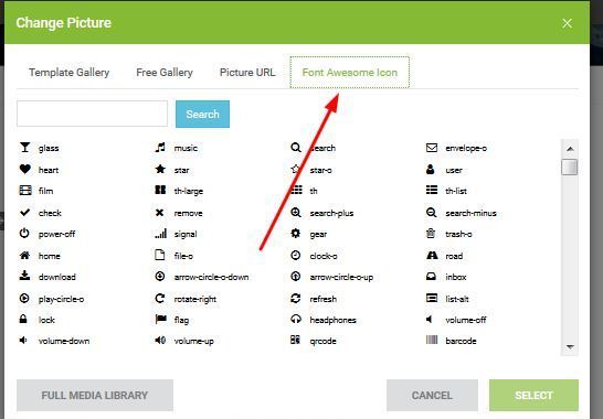 You can upload your own image / select an image from our free gallery / select an image from an alternative Url or make use of our fun font icons.