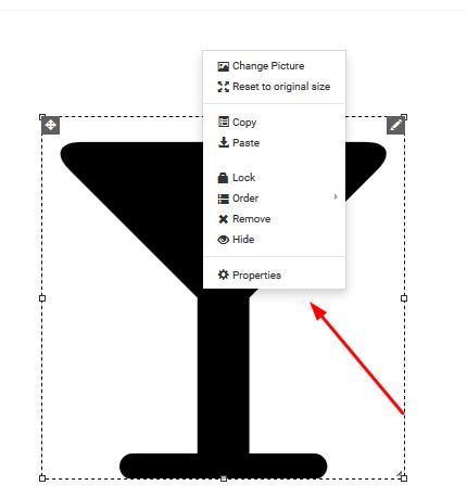 Once you have selected / uploded your image. Right click on the image for properties.
