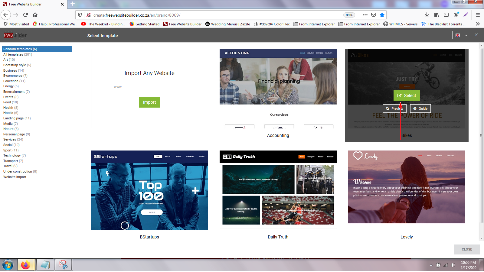 Once you have chosed the website template you like, you click on select. Once you click on select, your template will be loaded directly to your website and you are now ready to start building the rest of your website.