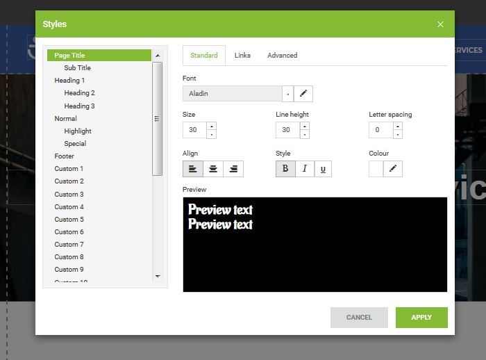 The styles on your website can say alot about what type of business style you have. Our style options include changing fonts / styles / layout and colours of the text you are using.