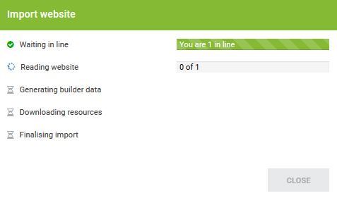 Once you have clicked on the "Import" button, a box will appear showing the progress of the website import.